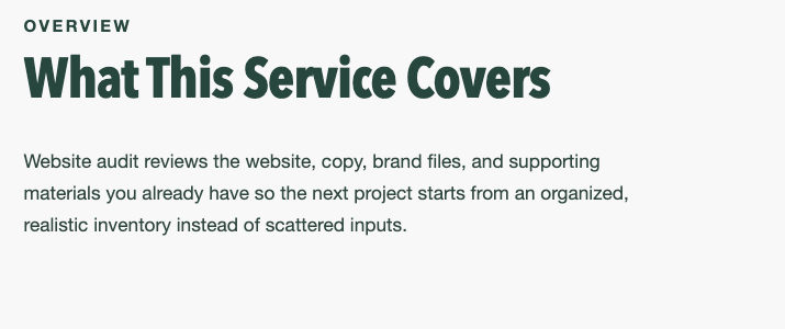 Once these fields are filled in, you should have a clear first-pass structure for the service page. From there, the page can be refined, edited for SEO, and built more confidently.